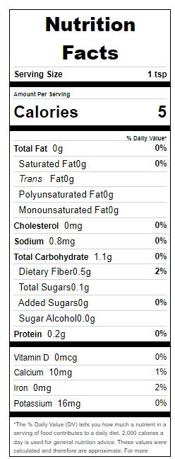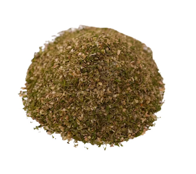 Ingredients: *Onion, *oregano, *basil, *thyme, *rosemary, *garlic, *bell pepper, and *marjoram. *Dehydrated