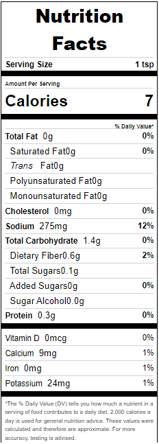 Original: Salt, *garlic, black pepper, *onion, *red pepper flakes, *rosemary, *basil, *Mediterranean oregano, and *parsley. *Dehydrated.
